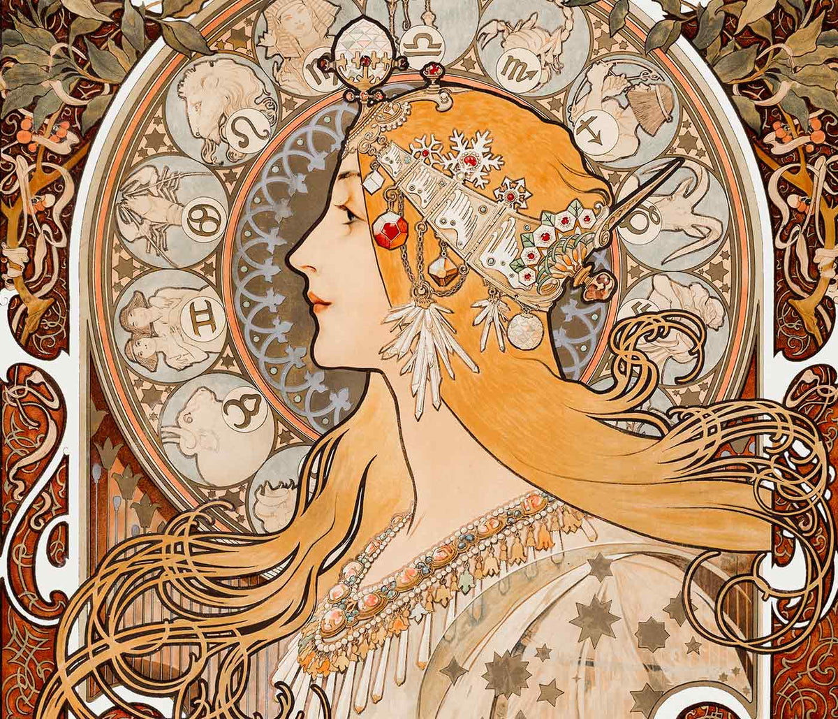 À Paris, au tournant du XXe siècle, le poster devient une scène publique. Murs, kiosques et corridors de café adoptent un nouveau langage visuel : formes typographiques audacieuses, aplat de couleur, figures assez grandes pour se lire depuis une voiture en mouvement. L'imagerie Art Nouveau d'Alphonse Mucha incarne ce moment, transformant la publicité en théâtre civique. Ces posters vintage reposent sur une ligne sinueuse, un rythme floral et des encadrements en médaillon qui ralentissent le regard pour mieux le récompenser par le détail. Pour replacer ces pièces dans le contexte graphique de l'époque, associez l'ambiance à Advertising et explorez le panorama artistique plus large dans Famous Artists.