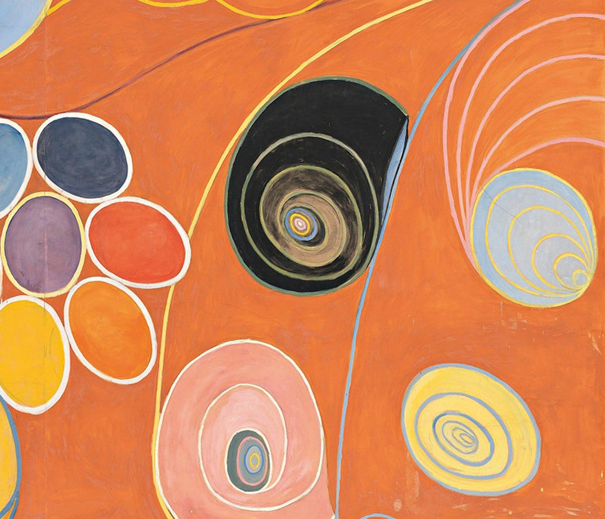 Joan Miró · 1948 · Poster biomorphique ludique aux lignes noires flottantes et accents orange bleu jaune sur beige
